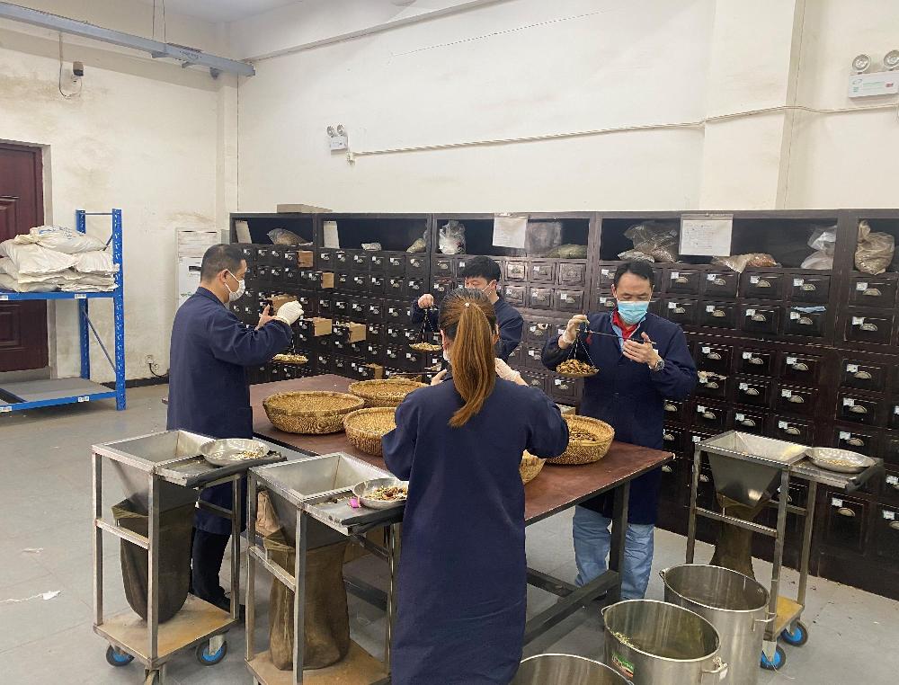 3月3日起,松江區(qū)衛(wèi)健委向上藥余天成(上海)醫(yī)藥有限公司西林代煎部征集疫情防控中藥湯劑。短短時(shí)間,湯劑需求量就從每日的1600貼增至6000貼。代煎部全體員工連續(xù)加班加點(diǎn),抽調(diào)各部門援手相助,累計(jì)已完成23000多包湯劑和21個(gè)點(diǎn)位的配煎送任務(wù),每天都確保將熱乎乎的防疫湯劑交到前哨一線人員手上。